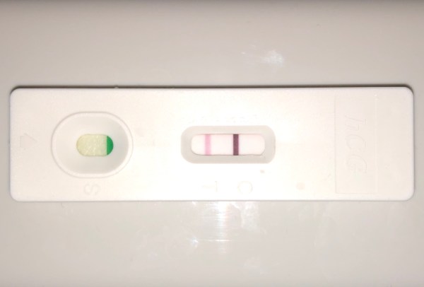 Wednesday 16th: Positive. Took an ‘Official clinic test’ I had leftover from a failed IUI. Quite a strong line!