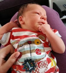 After latching on and feeding so beautifully straight after birth we had a few issues with feeding, not that any of the midwives noticed or helped, despite the curtains being open! It got to the point early the first day that he was screaming and screaming and I assume he just wasn’t getting anything. Eventually a volunteer came round and told me how to hand express some, but not being a midwife she wasn’t allowed to touch me to show me so she demonstrated on a knitted boob. She gave me a syringe to collect it and left me to have a go. Obviously not producing milk yet I wasn’t producing much, but I managed to express four drops which didn’t even reach a measurement mark on the syringe! I felt so silly but she told me to give it to him anyway. Within a few minutes though he had thrown that back up!