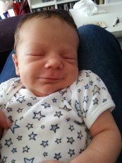 The midwife came three times over the next few days and checked my stitches, weighed him a couple of times and did his heel prick test, which he didn’t enjoy. His weight went down from his birth weight of 7lb 9oz to 7lb 3oz on day 3 but by day 5 he was already back up to 7lb 6oz! After day 5 I was asked if I could go to the clinic on day 10 for our last visit, at which he weighed 7lb 13oz. She checked my stitches again and after that we we discharged from the midwife!