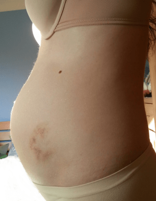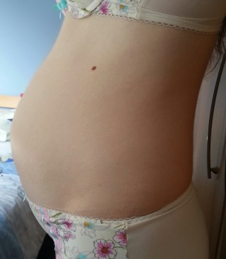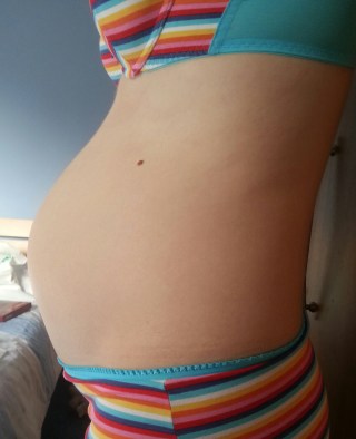 I’m still loving my bump and am slowly moving to only wearing maternity clothes, jogging bottoms or jeans with a hair band extending the waist!