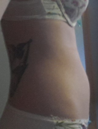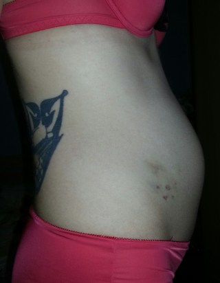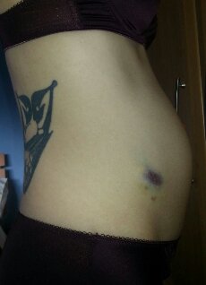 The most recent photo shows the bruising on my tummy from the daily injections as well as a bump which I think is bigger than the first photo!