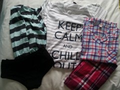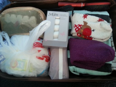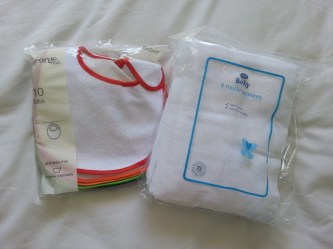 I managed to pick up lots of the things I didn’t have at Tesco, eg breast pads and maternity pads. I then set about finding things around the house that still fit me and would be suitable. Eg. an old nightdress and button up fronted tops.