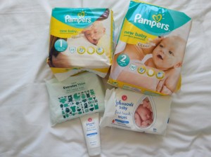 Nappies In sizes 1 and 2 to cover all eventualities. I chose pampers as I am not sure what is good and what isn’t. I’m hoping to use reusable eventually but I will be starting off with disposable