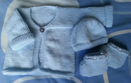 I had been slacking a little bit on my knitting – I knew the pattern I wanted to do and had even bought the wool, I just hadn’t got round to starting it, however, once I’d started it came together very quickly and in about three evenings I had managed to knit my first ever piece of clothing – a very cute newborn cardigan. I am so proud of it – it took just over 2 50g balls of wool, which price wise puts it at about £6 which isn’t too bad.