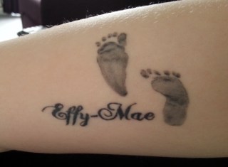 I decided the perfect tribute to her would be to get a tattoo and the hospital made some lovely hand and footprints of her so I got her footprints and her name tattooed on the inside of my upper arm so she will always be with me.